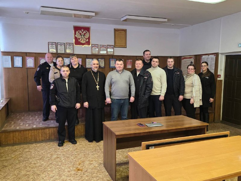16 января в актовом зале отдела полиции по г. Красноармейску состоялась встреча настоятеля храма свт. Николая Чудотворца с. Царёво священника Сергия Львова с сотрудниками отдела. Отец Сергий от лица духовенства Ивантеевского благочиния поздравил личный состав отдела с праздником Рождества Христова. Затем состоялась беседа, посвященная празднику Рождества Христова, а также были намечены планы совместных мероприятий на 1-е полугодие 2026г.