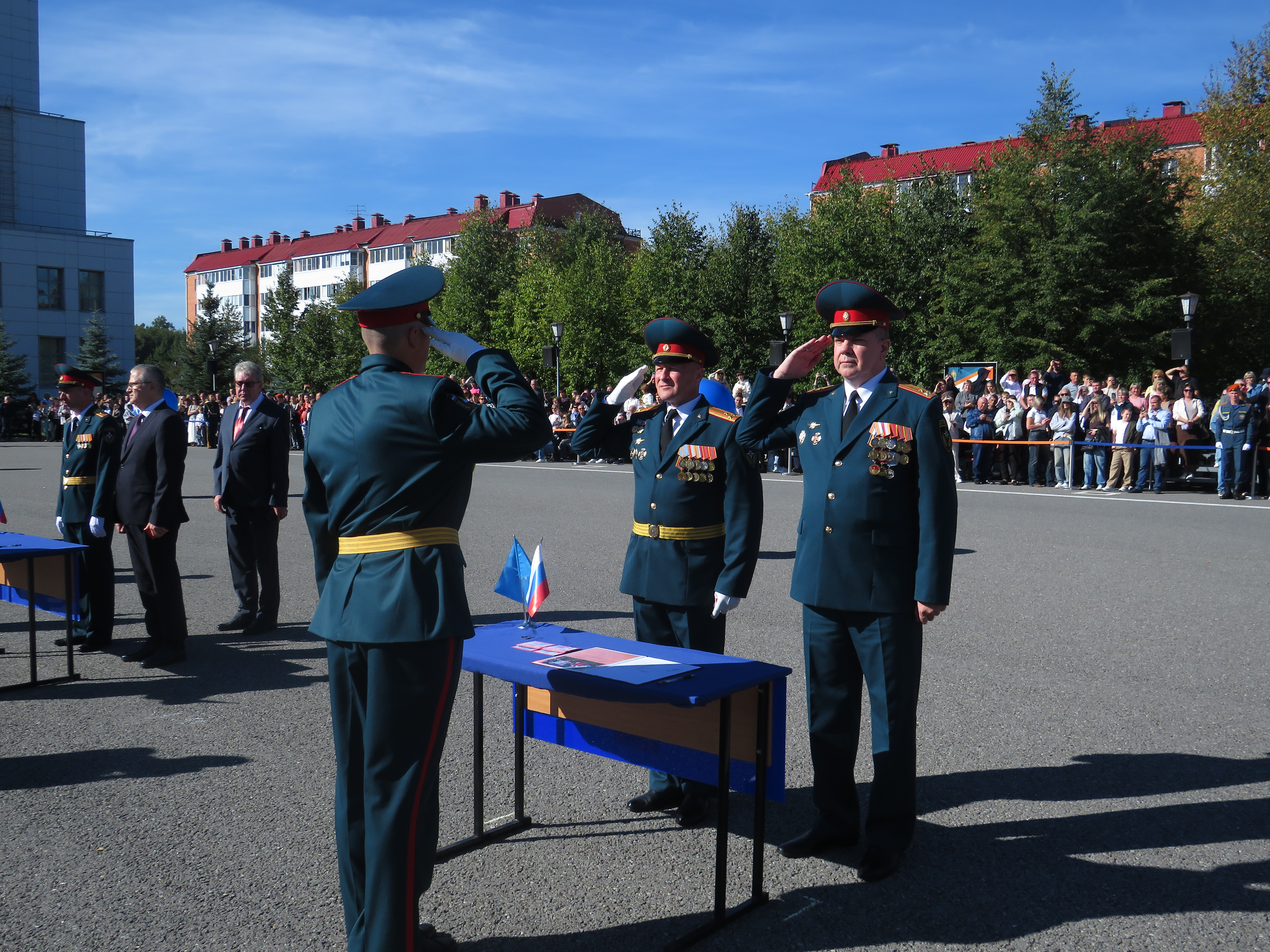 По окончании приведения к присяге будущих специалистов МЧС, была объявлена официальная часть, в рамках которой перед собравшимися выступили: