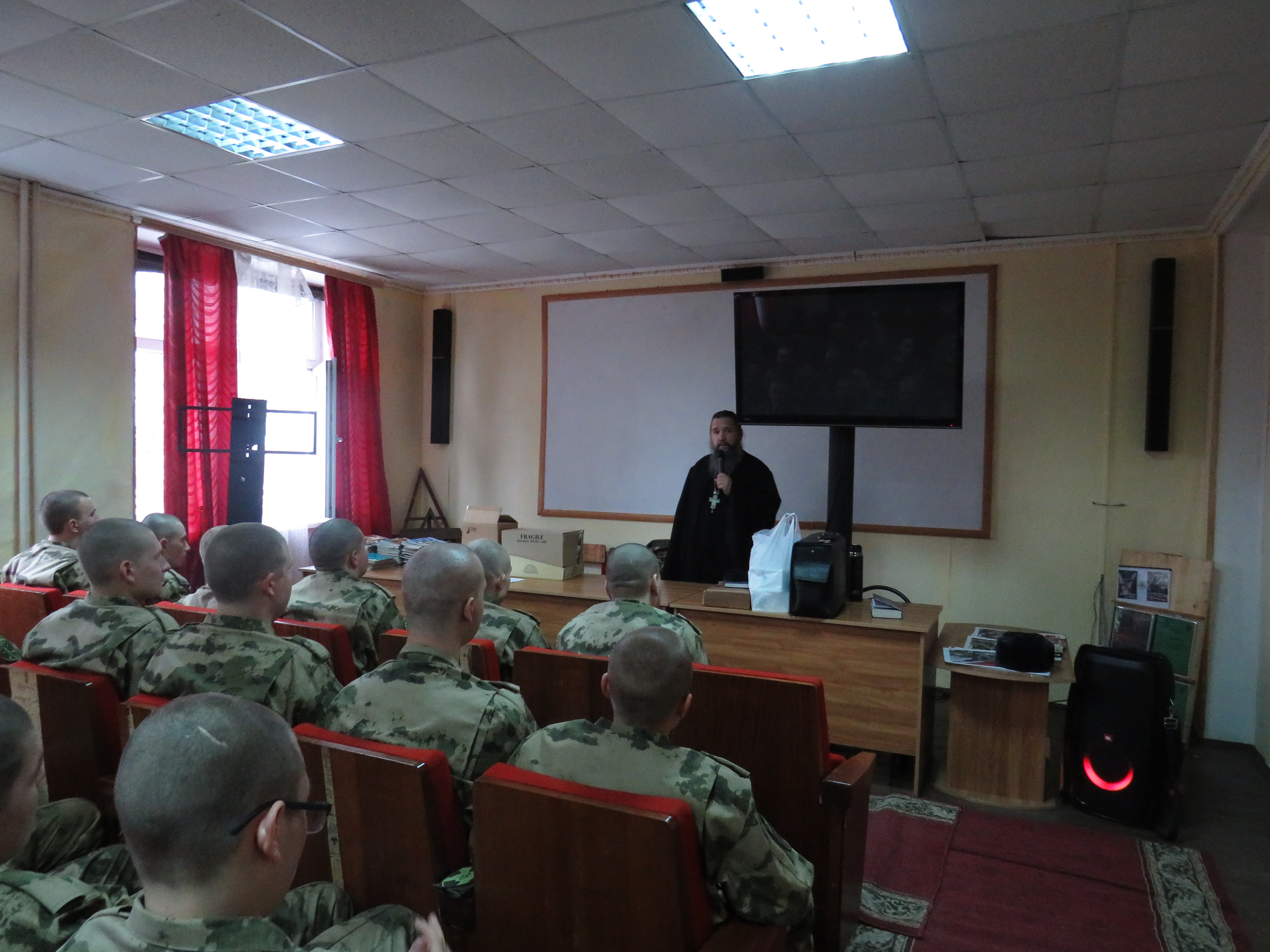 Он благословил новобранцев на успешное служение и подчеркнул: «Человек, попав в условия воинской службы, испытывает определённые трудности и нуждается, в том числе, в помощи Божией, чему способствует вера. Если военнослужащий участвует в военных действиях, то он постоянно находиться на грани жизни и смерти и как никогда открыт Богу, ищет у Него покровительства и обретения смысла своего воинского служения».