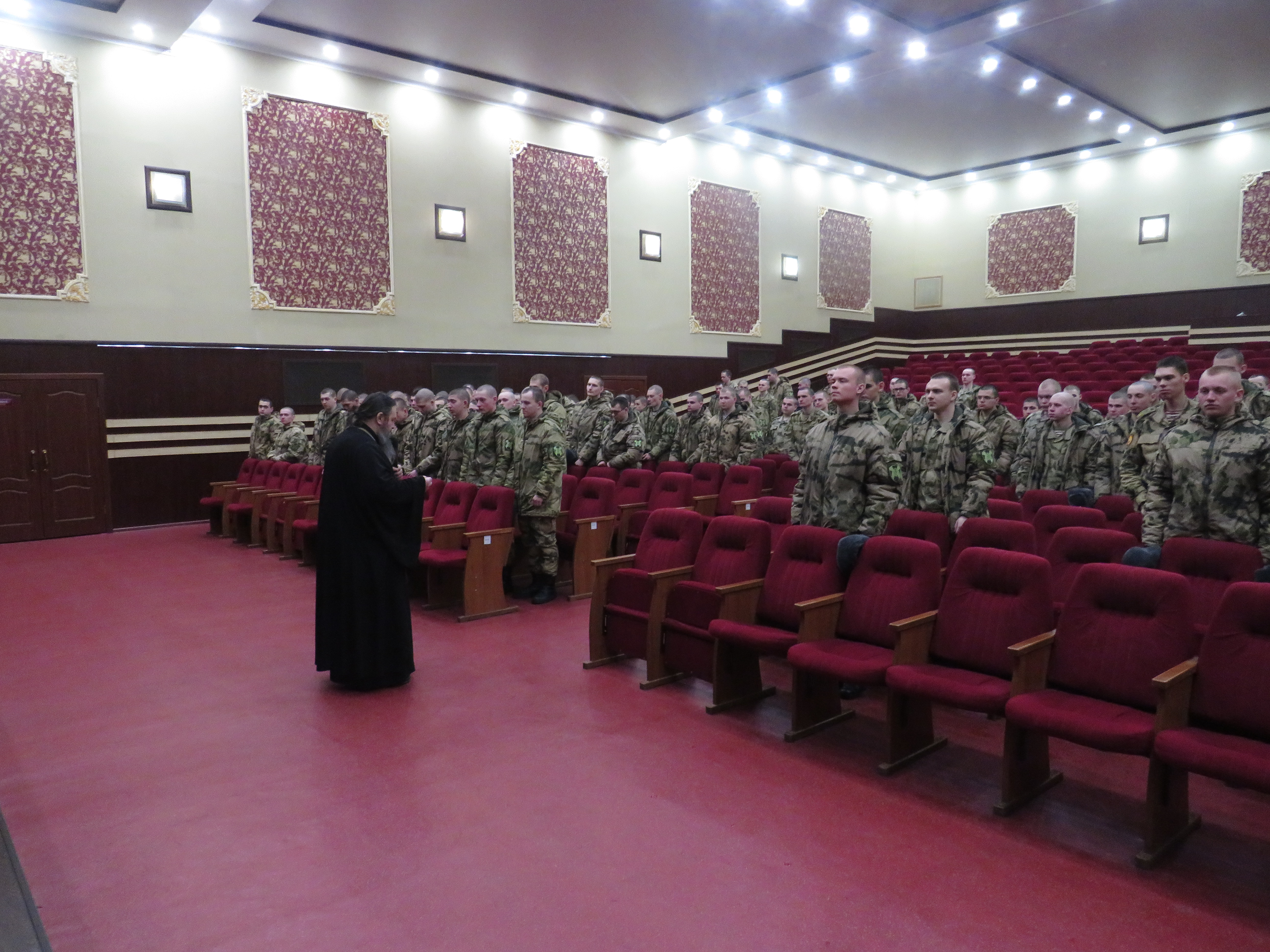 Мероприятие прошло в актовом зале войскового клуба и было посвящено Дню памяти Новомучеников и исповедников Российских. Священник рассказал воинам о гонении на Церковь в XX столетии на территории нашего Отечества и привел многочисленные примеры стойкости и твердости духа православных христиан, принявших страдания, а, зачастую, и мученическую смерть за веру, но не отступивших от Господа.