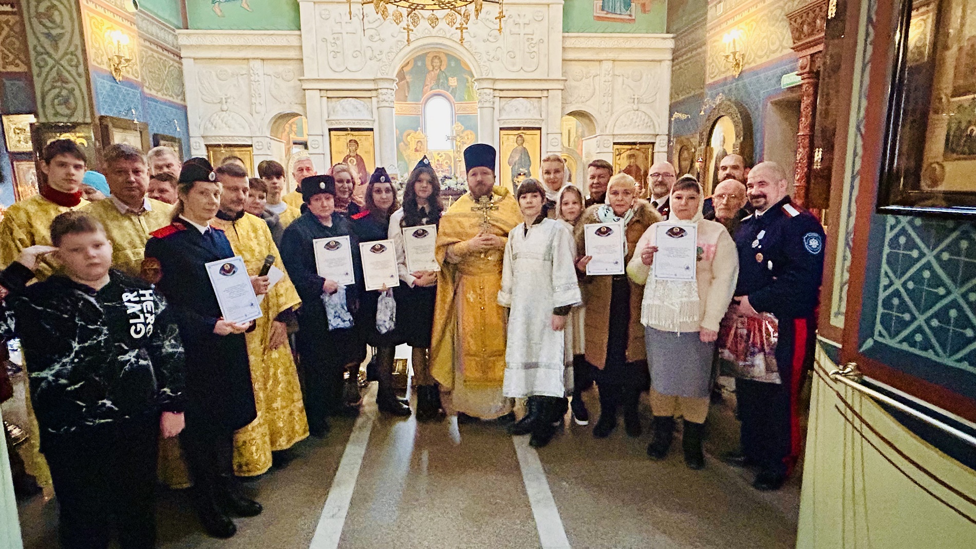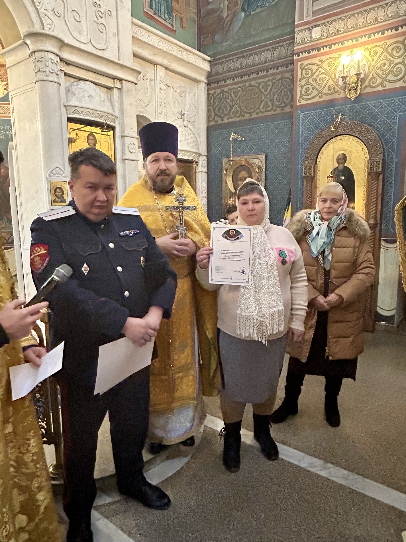 7 декабря в Покровском казачьем храме д. Мышецкое г.о. Химки прошло торжественное мероприятие, посвященное прошедшему празднику Дню матери казачки. В этот день приглашенным представительницам окормляемых казачьих обществ ГКО г. о. Солнечногорск, Лобненского ГКО и ХКО Химкинское были вручены благодарственные письма и символические подарки от Коллегии по окормлению казачества при Отделе по взаимодействию с Вооруженными силами, правоохранительными органами и казачеством Сергиево-Посадской епархии. С поздравительным словом к присутствующим женщинам-казачкам обратились протоиерей Александр Азаров, настоятель храма, председатель Коллегии по окормлению казачества Сергиево-Посадской епархии и заместитель Атамана Отдельского казачьего общества Московской области, ВКО «ЦКВ» атаман ГКО г.о. Солнечногорск, есаул Александр Петрович Чижуэн. В мероприятии также принял участие заместитель главы г.о. Солнечногорск Эдуард Александрович Машковцев. Праздник завершился дружеской беседой за чайным столом.