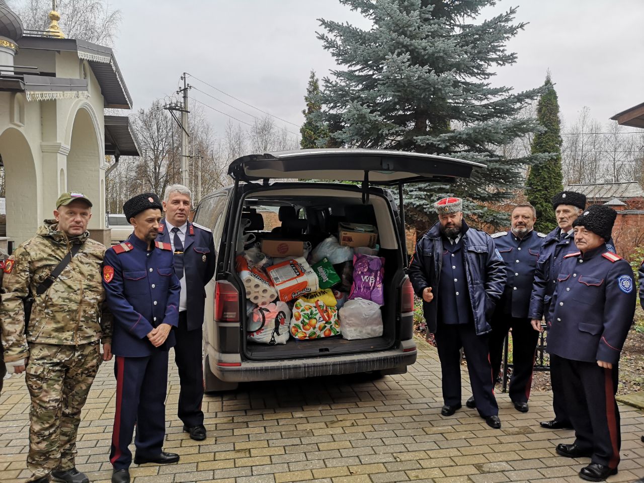 8 ноября настоятель храма блаженной Матроны Московской пос. Любимовка Ивантеевского благочиния священник Никита Потапов передал казакам Королёвского хуторского казачьего общества гуманитарную помощь, собранную прихожанами для воинов казаков в зоне СВО.