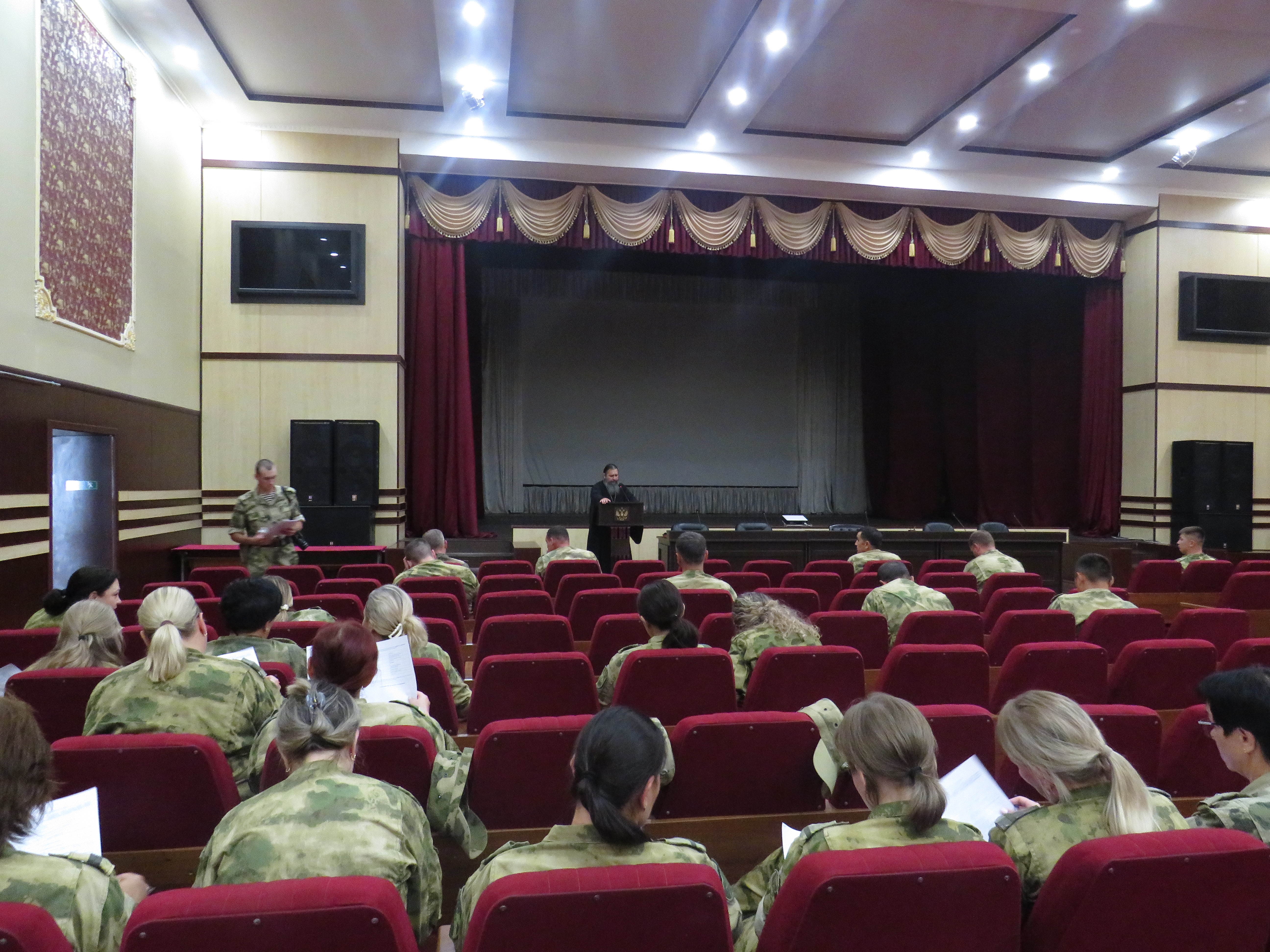 4 августа в понедельник Ответственный за пастырское окормлении Софринской Бригады Росгвардии игумен Феофан (Замесов) встретился в актовом зале войскового клуба с офицерами и военнослужащими по контракту. Священник рассказал защитникам Отечества о святых угодниках, чья память отмечалась в предшествующие дни: преподобном Серафиме Саровском и пророке Божием Илии.