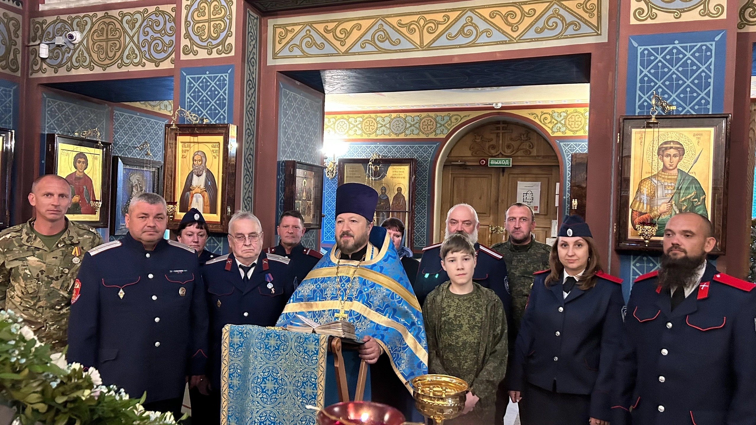 30 августа в Покровском казачьем храме д. Мышецкое г.о. Химки состоялась присяга атамана Хуторского казачьего общества «Химкинское» и новых членов, втупающих в общество. Торжественной присяге атамана на святом Кресте и Евангелии предшествовало служение молебна «о призвании благодати Святого Духа на всякое доброе дело: служение Отечеству, казачеству и вере православной», который совершил председатель Коллегии по окормлению казачества при отделе по Взаимодействию с Вооруженными силами правоохранительными органами и казачеством Сергиево- Посадской епархии протоиерей Александр Азаров. Также с напутствием к участникам обратился атаман отдельского казачьего общества Московской области, казачий полковник Игнатьев В.Б. Среди почетных гостей были: Первый заместитель атамана отдельского казачьего общества Московской области, есаул Малыгин Владимир Владимирович, представители соседних казачьих обществ и Химкинского отделения Боевого братства.